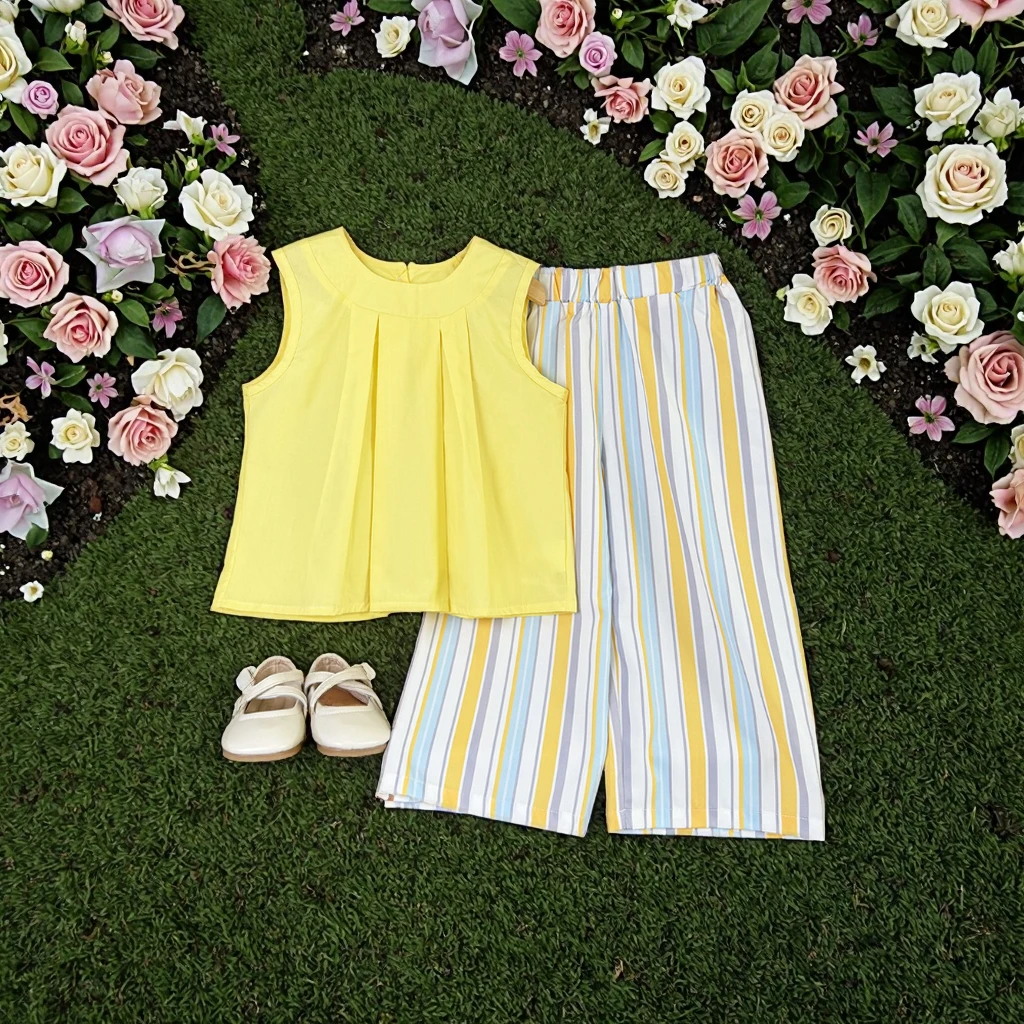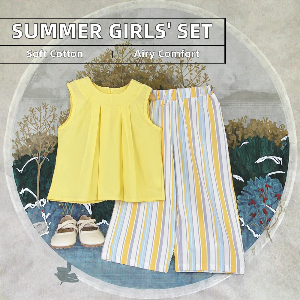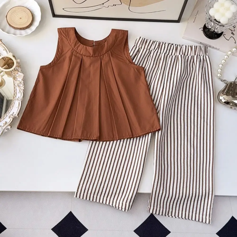 Korean Version Girls' Two-Piece Breathable Cotton Clothing Set Multicolor Sleeveless Top Solid Casual Pants New Summer Kids